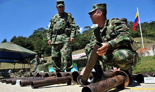 哥伦比亚军方近日查获一处武器藏匿处,收缴了大批武器弹药和制服装备。图为9月5日,在哥伦比亚考卡山谷省,士兵正在清点查获的武器弹药。