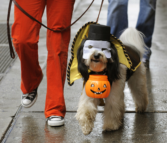10月18日,在美国纽约时报广场,众多小狗在此参加第5届年度狗狗化妆舞会表演。主办方称,这一活动的目的在于唤起人们对无家可归和遭遗弃动物的关注。