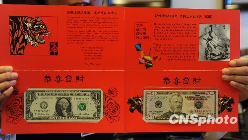 美国财政部造币和印钞局1日宣布,将限量发售中国虎年版“吉利钱”,向美国华裔社会送上新年祝福。中新社发 李静 摄