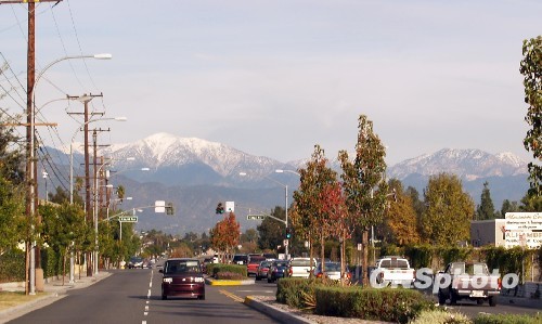 当地时间12月18日,圣诞节将至,美国东部不少城市巳经下雪,披上“银装”。但美国西部的洛杉矶却阳光普照,一片暖洋洋,而远处山上却飘起大雪,出现“雪山”景观。中新社发 卢威 摄