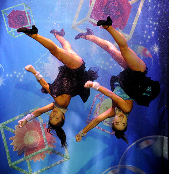 12月19日,在日本东京一家剧院,身着圣诞老人服装的演员参加“肌肉音乐剧”预演。让退役的奥运会选手穿上紧身运动短裤参加演出,展示其过人的身体素质与运动技巧,是“肌肉音乐剧”剧团独特的经营理念。