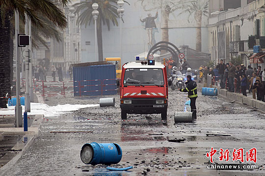 近日,在法国南部城市尼斯,巨浪袭击城市的海岸后造成城市道路瘫痪。法国南部部分地区遭遇大风和巨浪,使当地交通和供电受到不同程度的影响。