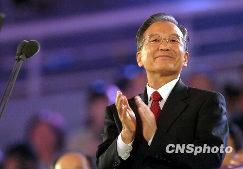 10月28日晚,第十一届全国运动会在济南闭幕,中共中央政治局常委、国务院总理温家宝出席闭幕式,并宣布十一运会闭幕。中新社发 陈文 摄