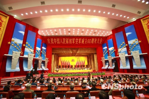 11月11日,是人民空军成立60周年纪念日。当天,“庆祝中国人民解放军空军成立60周年”大会在北京隆重召开。中新社发 谭超 摄