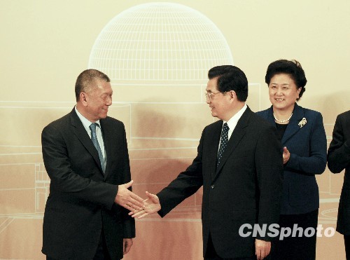 12月19日,国家主席胡锦涛、国务委员刘延东(右)、澳门特首何厚铧出席澳门科学馆开幕典礼。中新社发 廖攀 摄