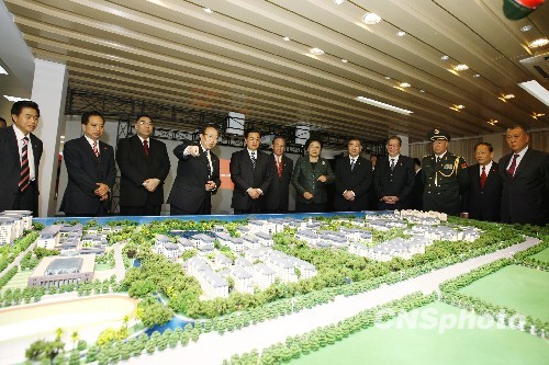 12月20日,国家主席胡锦涛在横琴岛出席澳门大学横琴校区奠基仪式,并参观了新校区模型。中新社发 GCS 摄