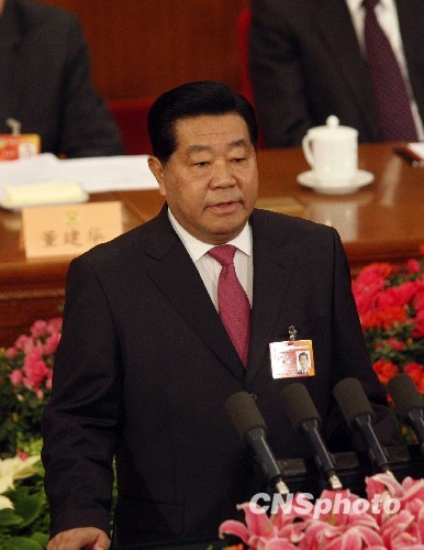 3月3日,全国政协十一届三次会议在北京人民大会堂开幕,贾庆林作全国政协常委会工作报告。中新社发 张宇 摄