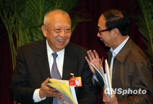 3月4日,全国政协副主席董建华在北京参加全国政协香港界小组讨论,认真听取香港界委员的建议。中新社发 汤彦俊 摄