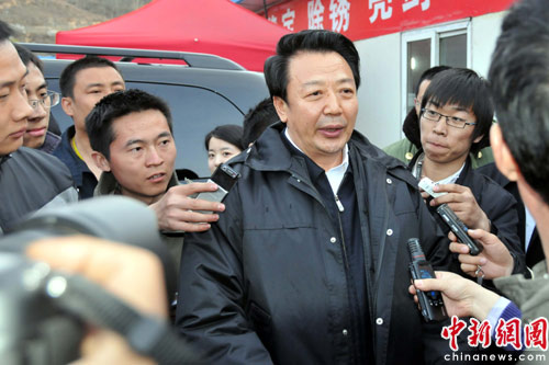 4月6日下午,山西省省长王君在开完指挥部协调会议后向记者披露,华晋焦煤公司王家岭矿透水事故已有6人遇难,32名被困的矿工还没找到。中新社发 刘冬 摄