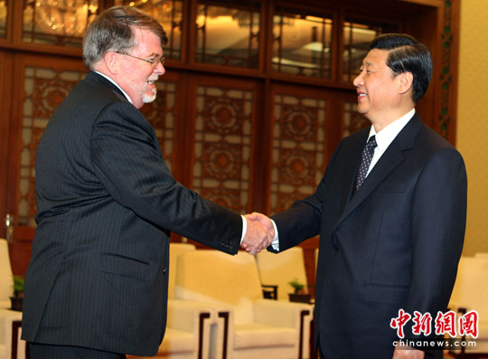 4月7日下午,中国国家副主席习近平在北京人民大会堂会见澳大利亚众议长詹金斯率领的澳大利亚议会代表团。中新社发 任晨鸣 摄