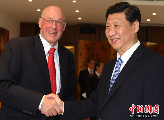4月9日上午,中国国家副主席习近平在海南会见前来参加“博鳌亚洲论坛2010年年会”的美国前财政部部长保尔森。中新社发 任晨鸣 摄
