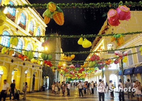 临近中华人民共和国六十周年大庆,澳门街头张灯结彩营造节日气氛。中新社发 洪少葵 摄