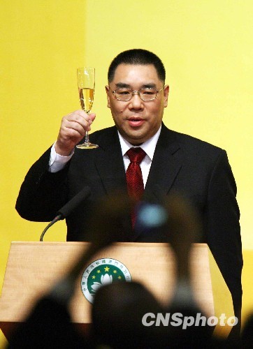十二月二十日下午,澳门特区政府在旅游塔举行“特区政府成立十周年酒会”,新任行政长官崔世安主持酒会并致辞。中新社发 洪少葵 摄