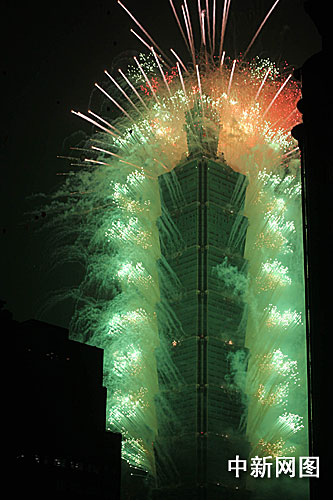 12月31日跨年夜,台北市在一0一大楼以烟火秀迎接2010年的到来。中新社记者 陈立宇 摄