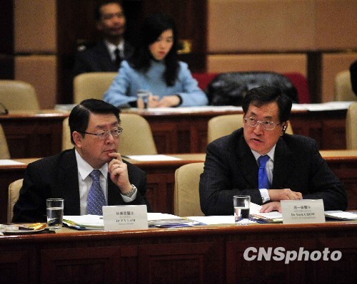 香港食物及卫生局局长周一岳(右)十一日表示,新的甲型H1N1疫苗到港后,政府将考虑是否扩大疫苗接种计划,但不会强制医护人员接种。在当日的立法会上,有议员关注有市民接种疫苗后,出现吉巴氏综合症病征,担心事件会减低市民接种的意欲,可能浪费大量疫苗,建议政府考虑为小学生免费注射。中新社发 谭达明 摄