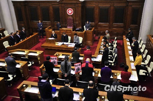 香港特区行政长官曾荫权,十四日出席立法会答问大会。立法会主席曾钰成批准议员要求,在大会开始时默哀一分钟,以哀悼海地地震的死难者。中新社发 谭达明 摄