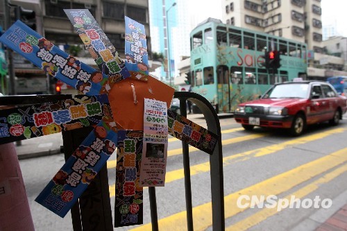 2月3日,香港扬名世界的金融、商业大都会,发达的现代商业亦为香港增添了铺天盖地、争奇斗艳的广告风景。图为一款造型奇特、没有注册的广告引人注目地出现在筲箕湾人行道护栏上。中新社发 郑祚声 摄