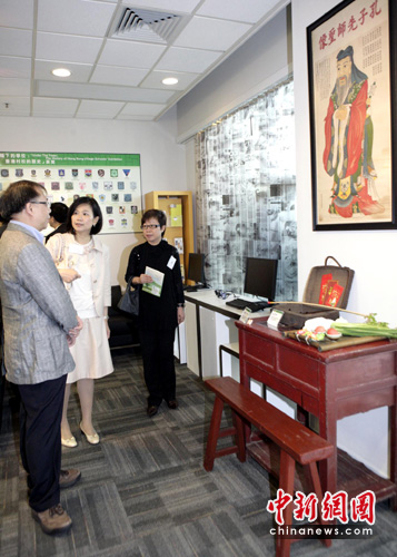 5月14日,香港教育博物馆举办题为“林荫下的学校:香港村校的历史”专题展览,让参观者了解香港村校的悠久承传。专题展展出200件与村校教育相关的文物,包括教学工具、科教书、籐书包、文具、校园设置、旧照片及历史档案等。图为展出的私塾开学日学生“必需品”。中新社发 张勤 摄