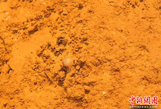 6月12日,安阳曹操高陵发掘直播现场,发掘出价值千万翡翠珠,当日被发掘的还有铁剑、铁钉、铠甲片珍贵文物。中新社发 王中举 摄