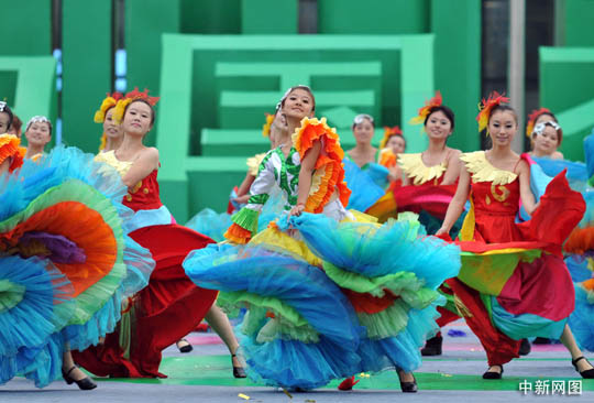9月26日,第七届中国花卉博览会在北京顺义主场馆广场隆重开幕,现场彩带漫天飞舞“花雨”从天而降,以及异彩纷呈的表演成为一道丰盛的视觉大餐。中新网记者 金硕 摄