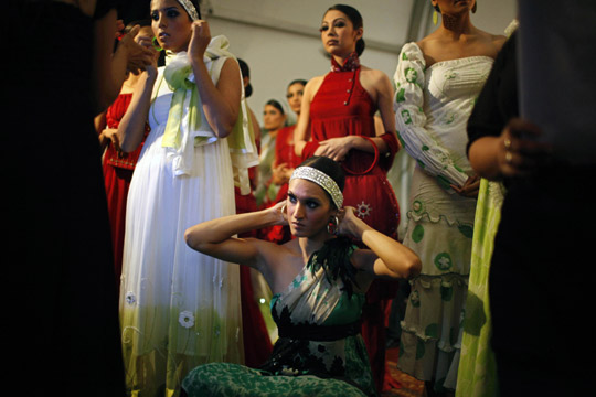 11月5日,巴基斯坦第一届时装周在卡拉奇拉开帷幕。美女模特们身着裸露双肩和肚脐的非伊斯兰传统服装在T台上走秀。