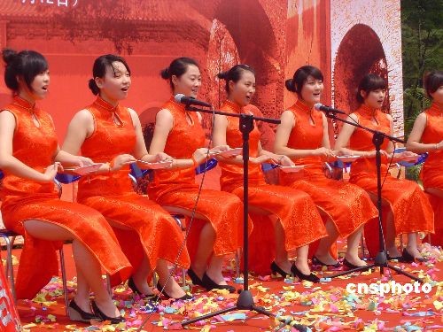 6月13日,是中国第4个文化遗产日。当天上午,为期1个月的“2009世界遗产明孝陵文化节”在南京明孝陵博物馆前广场开幕,以庆祝文化遗产日及明孝陵“申遗”成功6周年。图为开幕式上传统民族文化艺术表演。中新社发 王国安 摄