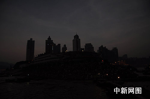 9时12分左右,食既开始,日全食进入全食阶段。记者在重庆朝天门码头看到,约1分钟时间白昼迅速变成黑夜,路上行驶的汽车纷纷打开车灯减缓车速,广场上的路灯也逐次亮起。