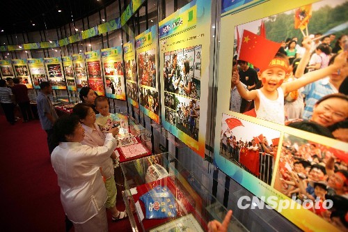 8月7日,“奥林匹克在东城回顾展”在北京东四奥林匹克社区博物馆举行,此次展览共分四个部分:百年奥运牵手东城、全民参与人文东城、国际交流魅力东城、和谐创新发展东城四个篇章,展出了奥运期间300多张精彩照片和200件与奥运相关的实物,展览的大部分实物是收集于社区居民奥运期间亲手制作和精心收藏的,照片也是社区居民参与奥运、迎接奥运的精彩画面。中新社发 杜洋 摄