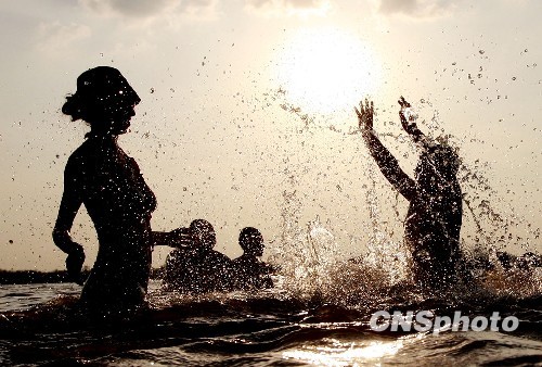 8月9日,哈尔滨几天来持续高温都在30度以上,“秋老虎”发威,松花江边是游人纳凉的首选。中新社发 姚庭山 摄