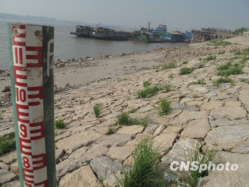 10月25日早8时,长江安徽省安庆段水位为6.80米,比历史同期低4.25米。这也是长江水位安庆段近三十年来的最低。据了解,长江安庆段水位从8月14日出现今年汛期最高洪峰水位13.97米后,就一直呈下降的趋势,出现这种低水位的原因是由于9月份的降雨量太少,据安庆气象资料记录9月份降水量只有38.6毫米,比历年同期少三成,进入10月份以来也少有降水。超低水位给长江航运带来不利影响,尤其是长江太子矶水道的超低水位对过往船只造成很大安全隐患,部分船舶相继搁浅。 中新社发 艾裴 摄