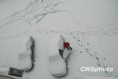 11月12日,山东省济南市平阴县遭受暴雪袭击。受冷空气影响,该县降下今年首场冬雪,市民冒雪出行,交通受到一定影响。中新社发 张庆民 摄