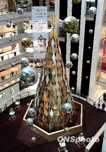 2009年11月30日,尽管离西方的圣诞节还有一些时日,但天津商家却率先制造出了一棵豪华圣诞树。据介绍,这棵圣诞树用不同规格水晶制成,高约15米,总造价达1000万元。中新社发 李胜利 摄