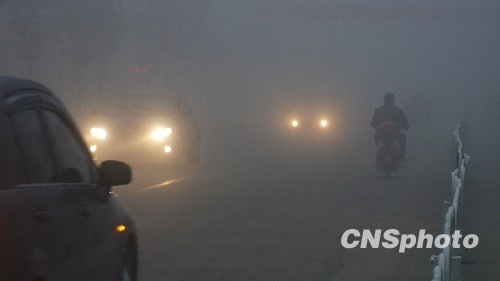 2009年12月1日,大雾笼罩安徽省亳州市。亳州市已经连续两天出现大雾锁城天气,局部地方能见度不足100米,给市民出行带来很大不便。市气象台发布大雾黄色预警信号。中新社发 刘勤利 摄