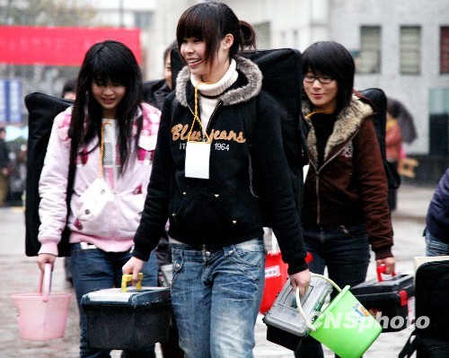 12月12日,江苏省2010年普通高校招生美术专业统考在南京艺术学院、南京师范大学、苏州大学、扬州大学、徐州师范大学、盐城工学院等6个考点院校同时进行,虽然当天南京的天空飘着小雪,但丝毫没有影响在南京艺术学院考点参加统考的考生。据了解, 2010年江苏省报考普通高校美术专业的考生共有48751名考生,仅比去年略减少981人。中新社发 钟山 摄