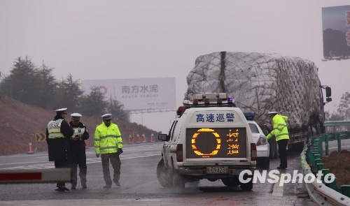 1月6日,江西省气象台发布道路结冰红色预警信号,预计今天九江、南昌、宜春、萍乡、新余、鹰潭、景德镇、上饶八市和吉安、抚州两市北部部分地区将出现道路结冰。受天气影响,目前江西境内大部分高速公路封闭。中新社发 邹海斌 摄