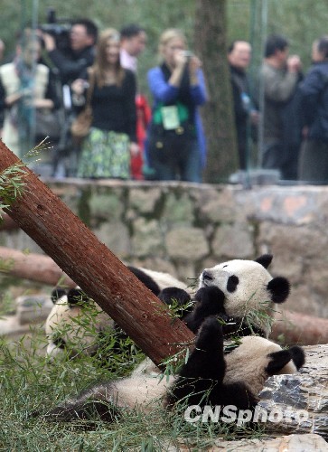 1月20日,10只来自四川的世博熊猫在上海动物园正式与民众见面,吸引了众多中外游客前来参观。经过多日的精心照料,这些世博熊猫已经基本适应上海的新生活。中新社发 汤彦俊 摄