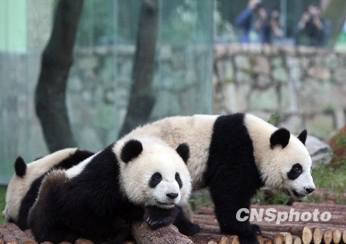 1月20日,10只来自四川的世博熊猫在上海动物园正式与民众见面,吸引了众多中外游客前来参观。经过多日的精心照料,这些世博熊猫已经基本适应上海的新生活。中新社发 汤彦俊 摄