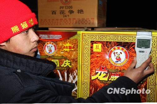 从1月27日起,北京虎年春节市场烟花爆竹供应商之一的熊猫烟花开始分送京城的近百个销售网点。与往年不同的是,今年的每一箱烟花都有了自己的“身份证”。从出厂运送到销售网点,所有的信息都可随时跟踪。中新社发 任海霞 摄