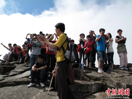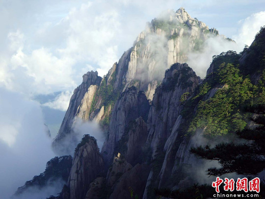 中新网黄山6月16日电(张启飞 肖永贵)雨霁初晴现奇景,壮丽诗篇在黄山。“端午节”小长假期间,安徽黄山风景区阵雨间晴。6月15日,黄山风景区阵雨绽晴,一幅幅山水国画直挂黄山,惊羡游客。