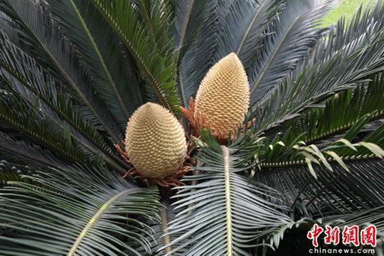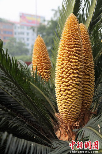中新网宜宾6月28日电(刘龙泉)记者近日在四川省长宁县城采访时,有夏女士向记者报料说,在长宁县城竹都大道276号一小区的铁树,这几年不仅年年开花,而且开得很有名堂,出现1株开3花、1株开2花、花果同现等奇景,值得一看。