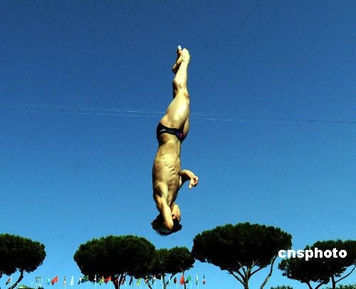罗马时间7月17日傍晚,中国跳水小将张新华在跳水男子一米板决赛前试跳。当日,第13届游泳世锦赛在罗马决出首金,在跳水男子一米板决赛中,中国选手秦凯、张新华分别以449.00分和445.90分包揽冠亚军。中新社发 廖攀 摄
