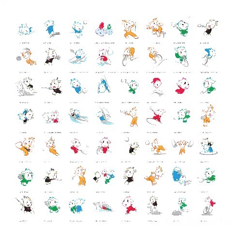 8月19日下午,广州亚组委发布了第16届亚运会吉祥物体育动作造型。此组造型以“阿祥”“阿和”“阿如”“阿意”“乐羊羊”5个可爱吉祥物,对广州亚运会竞赛项目做出动态诠释。中新社发 王华 摄