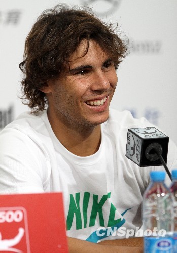 10月4日下午,男单头号种子选手纳达尔召开新闻发布会,回答了中外记者提出的关于自身状态以及马德里申奥失利等诸多问题。中新社发 王韶骅 摄