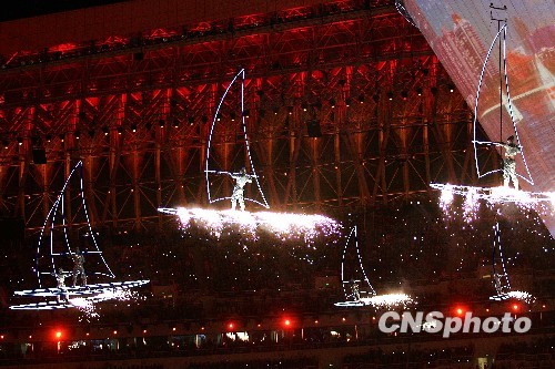 10月16日,中华人民共和国第十一届运动会在山东济南正式开幕。图为开幕式文艺演出精彩纷呈。中新社发 富田 摄