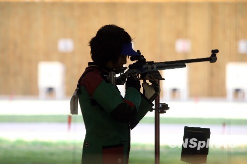 10月17日,在山东济南进行的第11届全运会女子50米步枪3种姿势决赛中,名将杜丽在最后一枪的争夺上发挥失常,无缘奖牌。中新社发 汤彦俊 摄
