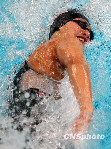 10月18日,第十一届全运会游泳比赛在济南奥体中心游泳馆进行男子4x100米自由泳接力决赛争夺,北京队以3分15秒50的成绩夺冠,这个成绩也打破了亚洲纪录。图为北京队主力队员张琳在比赛中。中新社发 富田 摄