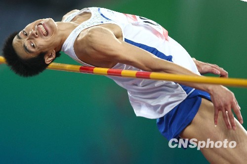 10月23日,全运会田径男子跳高比赛在济南奥体中心体育场继续进行,上届全运会冠军、黑龙江选手张树峰在时隔四年后再次夺得本届全运会金牌,他的成绩是2米28。中新社发 富田 摄