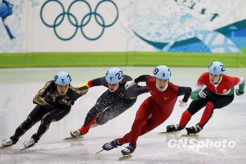 当地时间2月24日,2010年温哥华冬奥会短道速滑男子500米预赛在温哥华太平洋体育馆进行,中国选手韩佳良(右二)顺利晋级。