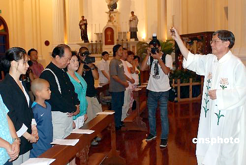 电影《少年星海》六月二日在澳门圣约瑟修院教堂开拍澳门部分。中新社发 毕永光 摄