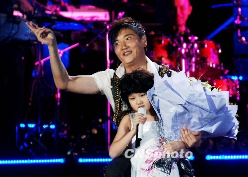 7月19日晚,“相约体育场、不见不散”孙楠大连公益演唱会在大连体育场上演。演出过程中,孙楠打出“亲情牌”,他的母亲、哥哥以及女儿买宝瑶都来到现场登台演唱,为演出现场营造出温馨的氛围。中新社发 刘德斌 摄